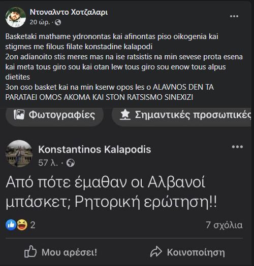 Για άλλη μια φορά γίναμε μάρτυρες θλιβερών καταστάσεων που έχουν σχέση με τον ρατσισμό. Αυτή την φορά θύμα ήταν ο 24χρονος Αλβανός μπασκετμπολίστας του Απόλλωνα Χαλκίδας Ντονάλντο Χοτζαλάρι. Αιτία η φραστική επίθεση που δέχθηκε από τον διαιτητή του αγώνα της Β ΕΣΚΑΣΕ Κωνσταντίνο Καλοπόδη ο οποίος ειρωνεύτηκε την καταγωγή του αθλητή αναρωτούμενος από πότε οι Αλβανοί παίζουν μπάσκετ.