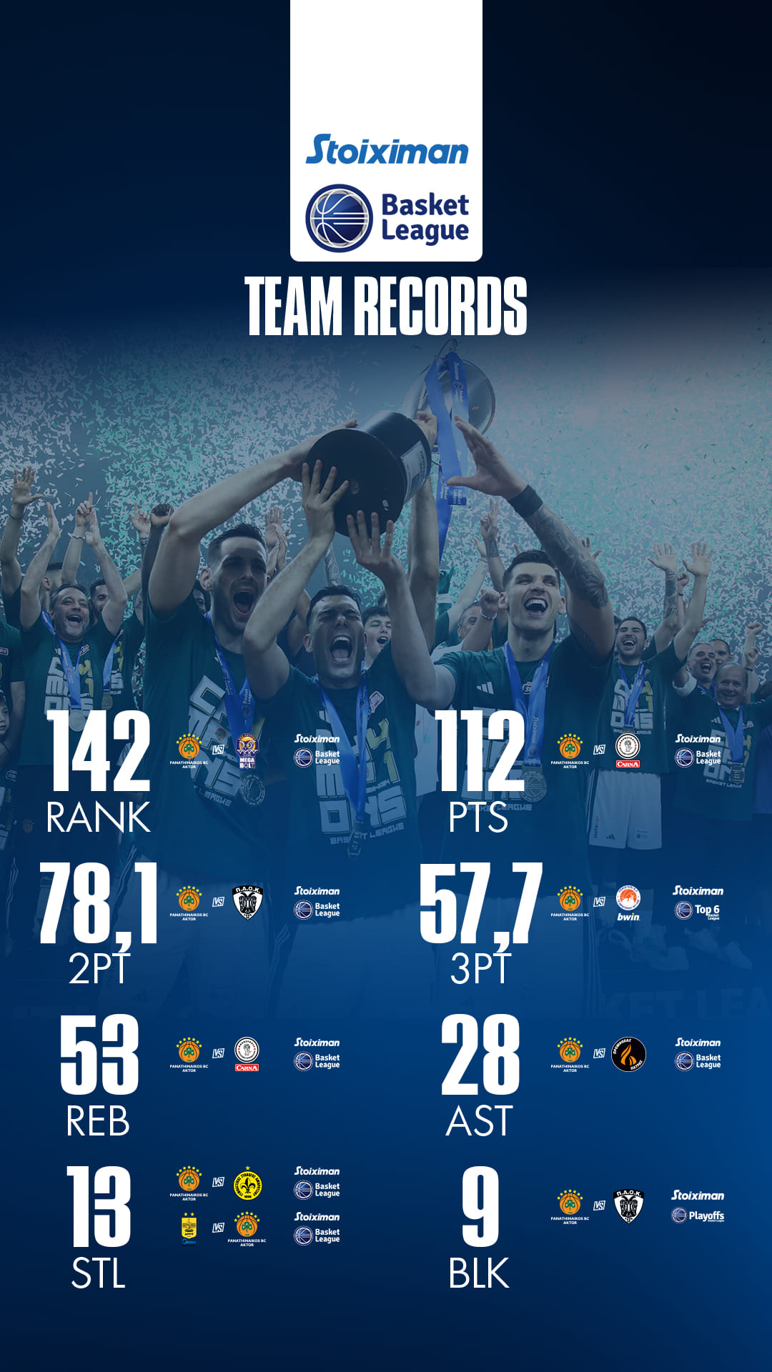 ΤΑ ΡΕΚΟΡ: Στη διαδρομή του προς την κατάκτηση του Πρωταθλήματος, οι επιδόσεις που ξεχώρισαν για τον Παναθηναϊκό AKTOR, σε ατομικό και ομαδικό επίπεδο ήταν…